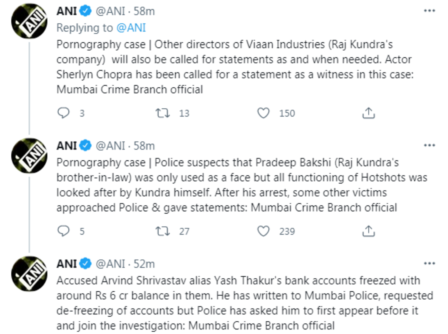 पुलिस को शक़ यह भी है कि राज कुंद्रा के बहनोई प्रदीप बख्शी को सिर्फ़ कम्पनी के चेहरे के तौर पर इस्तेमाल किया गया है। हॉटशॉट्स ऐप का सारा संचालन कुंद्रा ख़ुद देखते थे। कुंद्रा की गिरफ़्तारी के बाद कुछ और गवाहों ने पुलिस को अपने स्टेटमेंट दिये हैं।