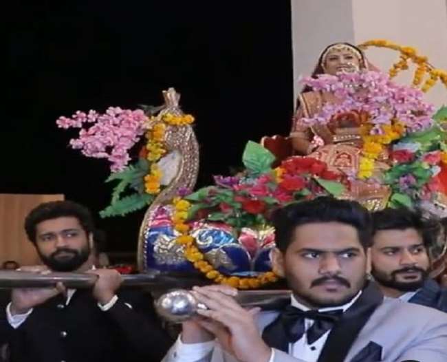 नई दिल्ली, जेएनएनl विकी कौशल और सनी कौशल अपनी कजिन बहन डॉली की शादी में नजर आए हैंl दोनों ने अपनी बहन डॉली के डोली को कंधे पर उठा रखा हैl विकी कौशल एक व्यस्त कलाकार हैंl हालांकि जब परिवार की बात आती है तो वह समय निकाल लेते हैंl वह अपने परिवार और चाहने वालों के बेहद करीब हैl विकी कौशल के शादी में भाग लेने के कुछ वीडियो सोशल मीडिया पर वायरल हो रहे हैंl इसमें वह अपनी कजिन डॉ उपासना वोहरा की शादी में नजर आए हैंl