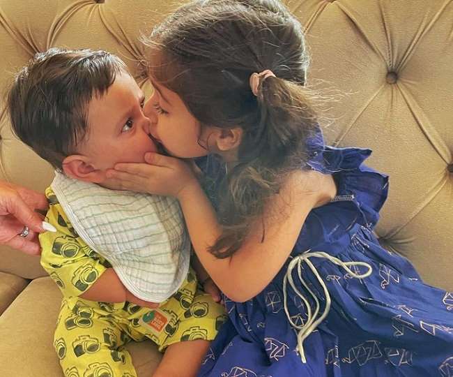 हाल ही में रक्षाबंधन के मौके पर भी सोहा ने अपने अकाउंट पर एक बेहद प्यारी फोटो शेयर की है जिसे देखकर आपकी भी उस तस्वीर से प्यार हो जाएगा। सोहा ने इंस्टा पर जो फोटो शेयर की है उसमें बड़ी बहन इनाया छोटे भाई जहांगीर उर्फ जेह को प्यार करती दिख रही हैं। फोटो में इनाया ने ब्लू कलर की फ्रॉक में बहुत क्यूट लग रही हैं तो वहीं पीले रंग के नेकर टी शर्ट में जेह भी काफी प्यारे लग रहे हैं। फोटो में इनाया जेह को होंठ पर किस करती दिख रही हैं वहीं जेह, इनाया को बड़ी गौर से देख रहे हैं। फोटो शेयर करते हुए एक्ट्रेस ने लिखा, ‘पहली राखी’। सोहा को फोटो पर नेहा धूपिया और अमिताभ बच्चन की बेटी श्वेता बच्चन ने भी कमेंट किया है।