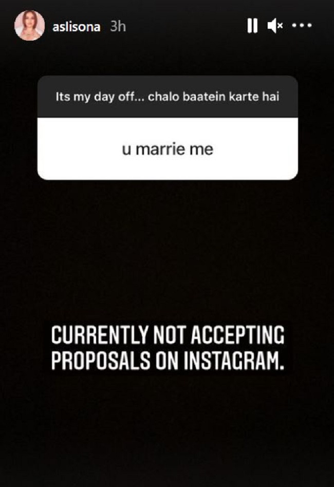 इसपर सोनाक्षी ने मजेदार प्रतिक्रिया देते हुए कहा, 'इंस्टाग्राम पर इस समय मैं प्रपोजल स्वीकार नहीं कर रही हूंl' सोनाक्षी सिन्हा हाल ही में भुज: द प्राइड ऑफ इंडिया में नजर आई थीl यह फिल्म ओटीटी पर रिलीज हुई हैl इस फिल्म में अजय देवगन, संजय दत्त और नोरा फतेही की अहम भूमिका हैl सोनाक्षी सिन्हा जल्द ककुड़ा में नजर आएंगीl इस फिल्म में रितेश देशमुख की भी अहम भूमिका होगीl इसके अलावा वह एक हॉरर कॉमेडी में भी नजर आने वाली हैंl इस फिल्म का निर्देशन अविनाश द्विवेदी और चिराग गर्ग करने वाले हैंl
